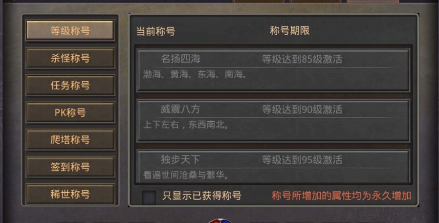 热血传奇手机版称号大全,游戏中随着玩友们游戏,等级提升会获得相应的称号,称号可以给职业带来永久性的加成,玩友们一定很想知道有哪些称号吧,下面小编就给大家带来了热血传奇手机版称号大全。