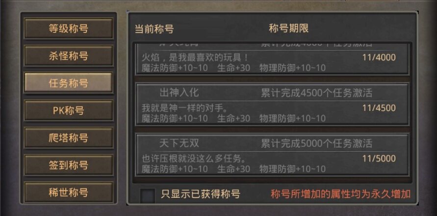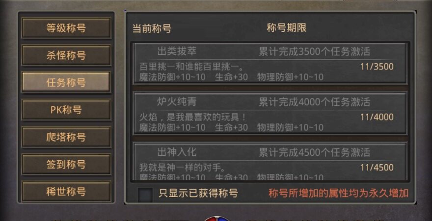以上是热血传奇手机版称号大全,小编主要给大家带来了等级称号、任务称号、签到称号、稀世称号等称号介绍和称号激活等级。