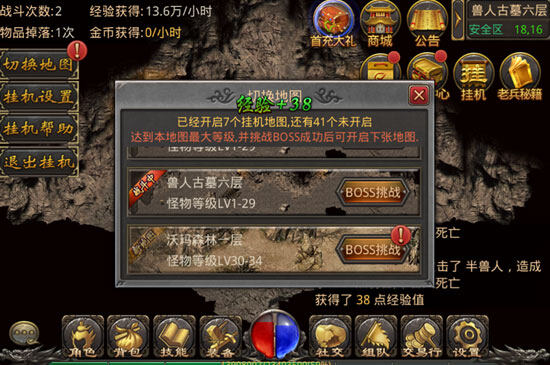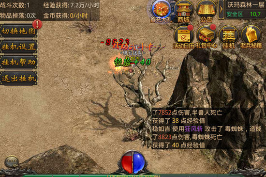 玩家安全地图即可点击挂机按钮,进入挂机系统