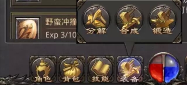 装备:装备按键,可以进入到分解,合成,锻造功能页面,对装备进行操作。