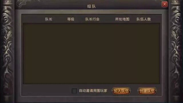 组队:组队按键功能,可查看加入队伍,创建队伍。