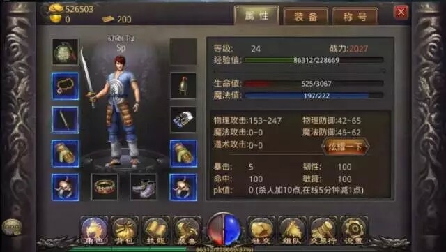 角色:打开角色按键可查看角色装备信息,以及角色数据,称号,装备信息。