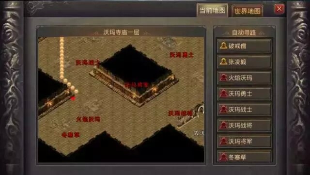 地图:地图按键功能可查看当前地图和世界地图,以及使用自动寻路寻找NPC和怪物。