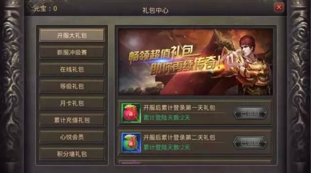 礼包中心:可查看当前活动礼包,并领取游戏礼包,助阵迅速提升游戏战斗力。