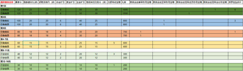2.累计胜场数相同时,在行会战力排行榜中,战力高的行会排名优先。