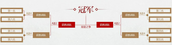 2、淘汰赛战队之间的战斗场次,8进4,4进2,为三局两胜制,决赛为五局三胜制。