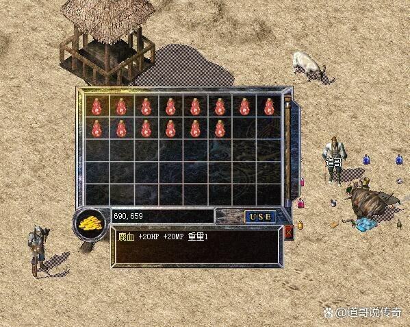 未知暗殿的BOSS竟然是玛法大陆地面怪物中最弱的几种,其中鹿就是未知暗殿的BOSS之一,产出也算中规中矩,其中它有概率掉落鹿血,这个有些类似小葫芦的红色药瓶竟然也是一种瞬间补给药水,它可以同时补给20点HP和20点MP,量有点小了,只能说有聊胜无聊了。老道以前打过未知暗殿的鹿,但是没掉落这个道具。
