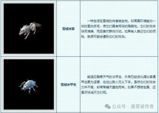 雪域地图中的怪物大多是冰雪色系,与雪地相似。最基本的如雪域冰狼和雪域冰甲虫。还有一些比较强悍的BOSS级怪物,如雪域天降、雪域战将等等。其中最强的是冰眼巨魔,如果没有大佬玩家带领,就无法击败它。它一个狼牙棒就能轻松秒杀普通玩家,真是不可思议。