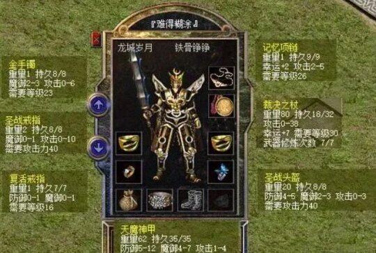 关于玩家的身世我们不得而知,但是他穿着的装备非常强大。如上图所示,百区的难得糊涂全身穿搭都是百区战士属性的巅峰,比如运2攻5记忆项链、攻4天魔神甲、攻6金手镯,还有那复活戒指居然也是7点持久上限的珍品。虽然攻3圣战头盔没有攻6神秘头盔输出强,但是整体属性更强。还有那把攻38运7裁决之杖虽然不如攻39的强,但是可以搭配运2攻5记忆项链,攻39的裁决之杖幸运一直没有上到7点,确实很遗憾。