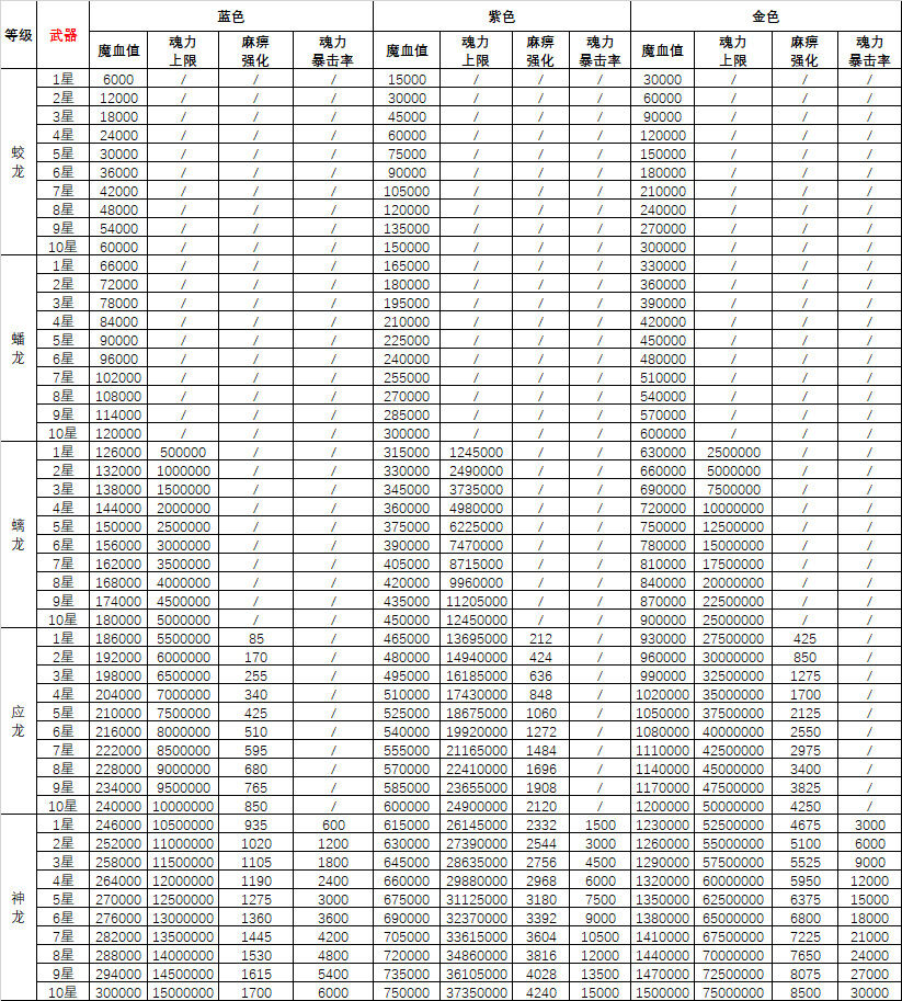 在“装备位淬炼”玩法中,不再仅仅是装备本身的档位决定装备实力上限,只要对“装备位”进行精心淬炼,随着淬炼等级的不断提升,装备位本身将被赋予神奇的力量。来一起看看五大等级的属性详情吧!区服:1-175区(除167、168)(一)武器类点击查看大图<<<淬炼所需材料: