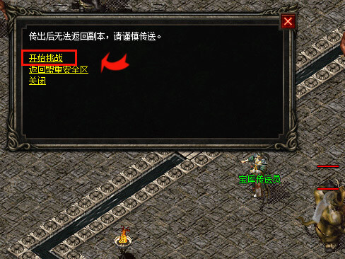 2、开始挑战:进入地图后,需要和NPC宝库传送员对话选择“开始挑战“才能刷出怪物。