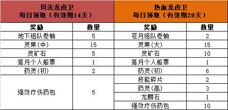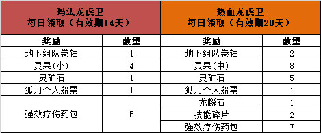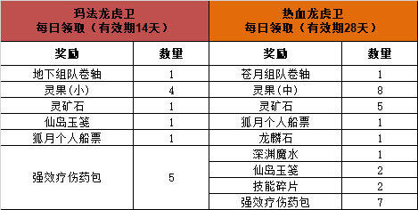 (玛法龙虎卫,参与期18天;热血龙虎卫,参与期为28天。)