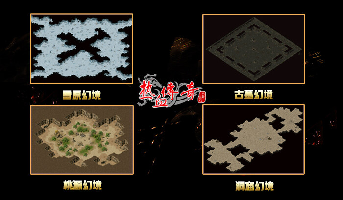 (二)秘宝幻境,四大地图可选择任一地图进入:雪原幻境、古墓幻境、桃源幻境、洞窟幻境(四张地图仅有地形差异)