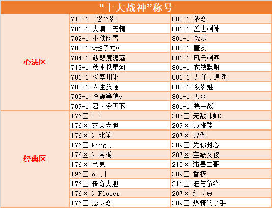 【神武大擂台 “擂主”名单】经典区的2位“擂主”:176区 氵氵207区 无敌帅帅冫