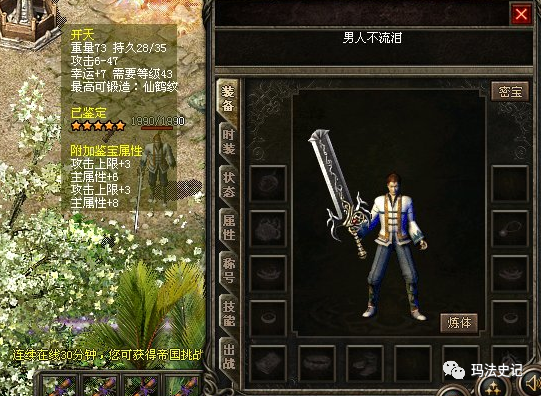 还记得之前唐吉诃德的两把攻击6-47的开天吗?不过因为他有一根运6的战神项链和一根运4的战神项链,因此开天的幸运都不是+7的。这把幸运+7的攻47开天才是当年的顶级装备,而且一般大佬都不一定能拥有的哦。