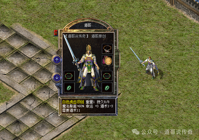 当然了,在传奇游戏中,白色虎齿项链最大的功效就是加了幸运之后可以搭配运九套,让玩家的每次输出都能发挥属性上限。而运九套基本上都是服务器顶级大佬才有实力搭配成功的,比如上图中落日战神英雄曾经拥有的这根白色虎齿项链属性非常逆天:60%魔法躲避属性外加3点幸运值,在搭配运九套的基础上还有超高躲避属性,真是单挑无敌神链啊。