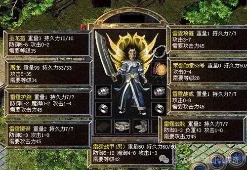 也正是因为雷霆战戒的属性并没有比赤月戒指有多大的超越,它也是相对容易被替代的名牌戒指。比如上图中的圣战戒指多加1点攻击上限就能超越它的属性,而且还有攻8力量戒指,甚至攻8骷髅戒指都能与之相媲美。整体来看这雷霆战戒确实略显尴尬,当然了,名牌装备搭配套装加个黑铁头盔还是比较霸气的。