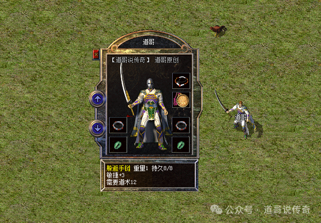 躲避手链,这名字真奇葩,叫躲避项链不好吗?为何搞个戴脖子上的手链呢?不知道陈老板汉化的时候咋想的。话说回来,躲避手链是特殊项链系列,人家是搭配敏捷套装用的,没有魔道攻属性或者加幸运的概率。如上图所示,躲避手链自带3点敏捷属性,佩戴要求是精神力12点,这一看就是专门为道士准备的道具。
