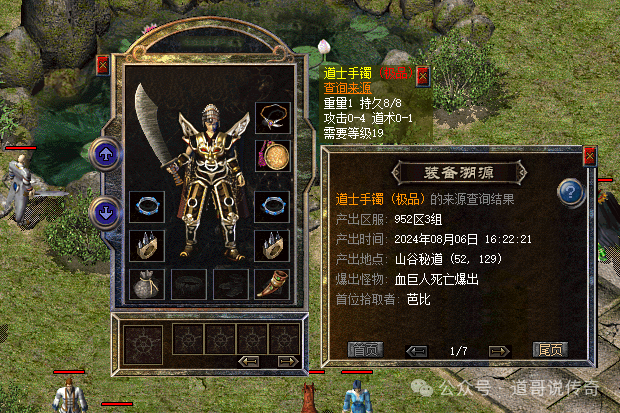 同样是攻4属性,上图中的道士手镯就属于极其罕见且牛掰的加点模式,可以说有些离谱了。经常看老道文章的哥们应该见过它,不过溯源就没见过了。如上图所示,它产自山谷密道的血巨人,这运气也是没谁了。