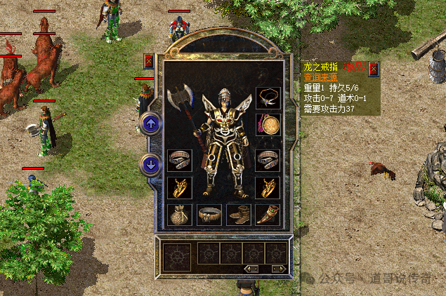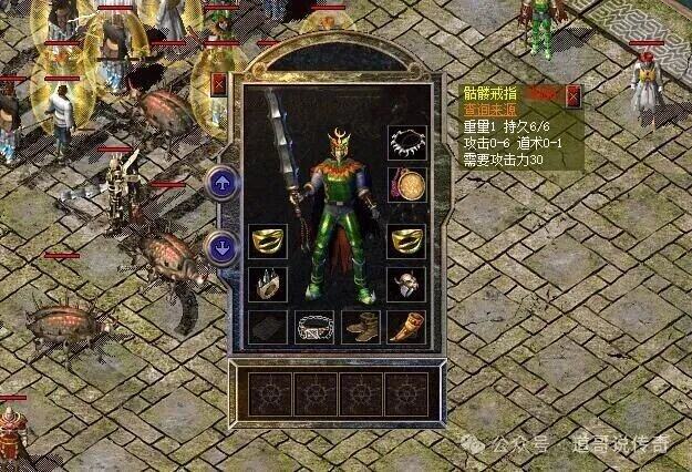 骷髅戒指在老道的印象中比较深刻,当年新手阶段看见人接戴着这个霸气的戒指真是羡慕,只可惜自己是道士。如上图所示,这个骷髅戒指多加了3点攻击属性达到力量戒指的档次,而且还多加1点道术。复古版本中给战士用足够了,而1点道术给砍道用太浪费。