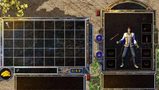 你一进入游戏,你会发现自己近乎裸体的站在游戏的窗口中心,这个时候你可以打开你的包裹(F9)看见系统配置给你的基本衣服,木剑和蜡烛。打开角色窗口(F10),你就能够清楚的看到你的一切了。现在,请从包裹窗口中拖动衣服到角色窗口中角色的身体上,然后把木剑放在角色的右手上,你就可以开始第一次打猎了,也就是说你可以开始你的游戏冒险了!,如果薄雾或者黑暗来到,你可以把蜡烛放在你左边的空格内,以便你能够看清楚周围的事务。