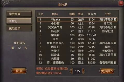 4.每晚21点重置挑战次数。你可以根据你在21点的排名得到相应的奖励,排名越高,奖励越丰厚。
