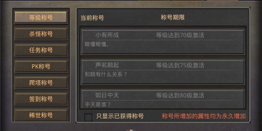热血传奇手机版称号大全,游戏中随着玩友们游戏,等级提升会获得相应的称号,称号可以给职业带来永久性的加成,玩友们一定很想知道有哪些称号吧,下面小编就给大家带来了热血传奇手机版称号大全。