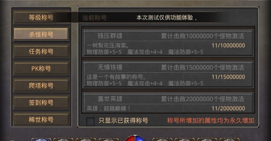 以上是热血传奇手机版称号大全,小编主要给大家带来了等级称号、任务称号、签到称号、稀世称号等称号介绍和称号激活等级。