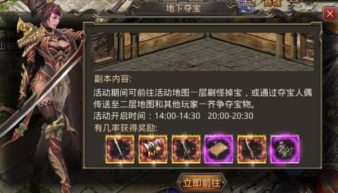 1、野外BOSS和地下夺宝,这个方法既考验玩家的运气,又需要玩家手速够快,因为掉落出来的装备都需要大家抢的,所以这个方法只有小部分人可以得到紫色装备。