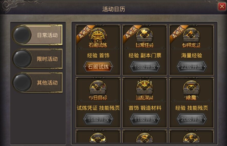 2、日常活动中的石阁试炼,不过这个掉落的是装备碎片,收集一点数量后可以直接锻造获得装备,这个应该是大多数玩家获得紫色装备的主要途径了。