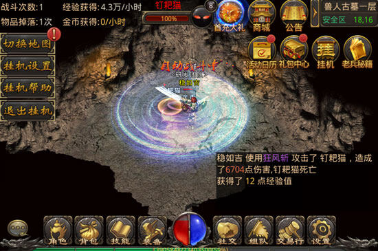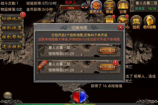 玩家安全地图即可点击挂机按钮,进入挂机系统