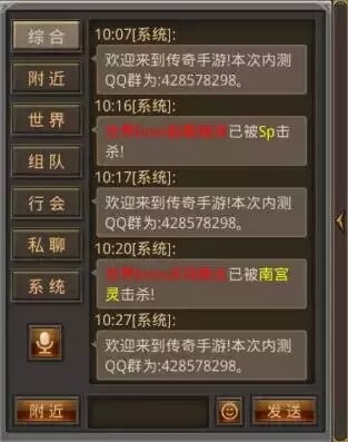 聊天按键:聊天按键功能,可查看综合,附近,世界,组队,行会,私聊,系统等聊天具体内容。聊天功能有利于玩家在游戏中顺畅交流。
