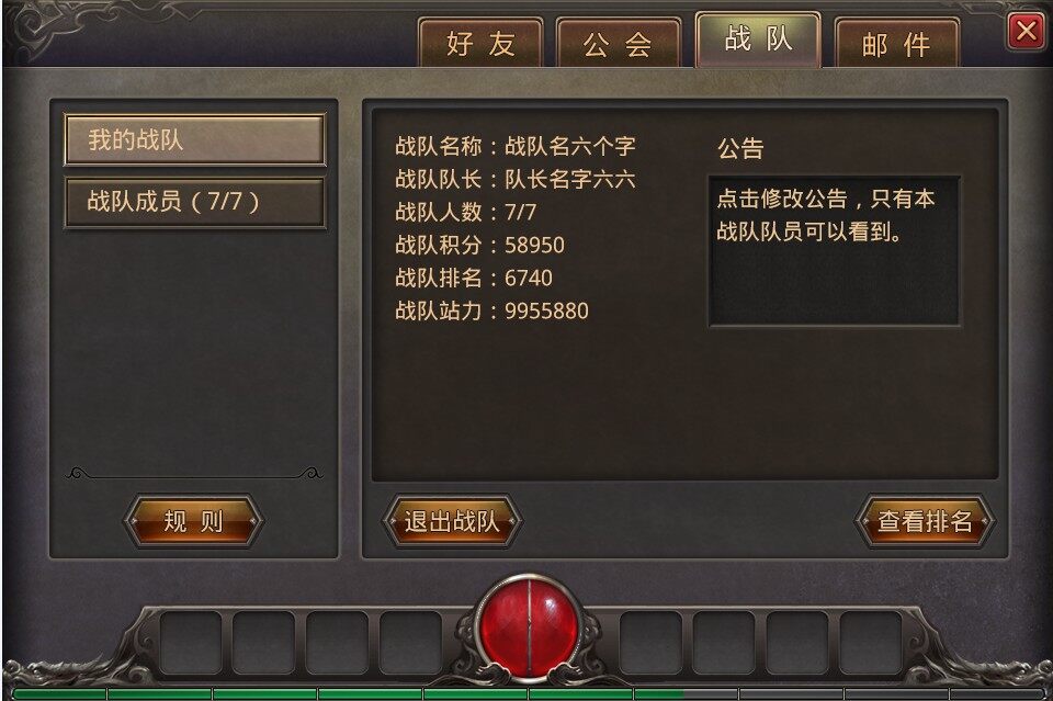 战队争霸赛自由报名参赛,每周固定时间进行比赛,海选赛开始后战队成员无需组队便可进入战场,所有参赛队伍将由系统随机两两分配后决出胜负,通过胜负关系进行战队排名。同战绩的战队,总战斗力高的战队排名靠前,最终将从海选队伍角逐出每个服务器8强队伍。5V5战队争霸赛产出的不只是激情与荣誉,还有极品幸运+2的神装项链等你来拿。《热血传奇手机版》新版本5V5战队争霸赛即将上线,还不找小伙伴组建最佳战队一起来PK?