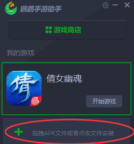1、如果游戏大厅没有你想要玩的游戏。需要在本地电脑安装APK文件,请点击游戏商店下方的加号按钮