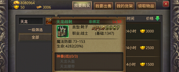 前期我们在打怪、离线挂机等获得的蓝装可以直接拿去合装备,不用去费心拿着它们去分解啊强化什么的,前期装备更换速度太快,并不值得去投资,而经过数次大的更新,降魔洞窟成为新手玩家获得初期紫装较为稳定的出产地之一, 最初一天可以进入5次,后来官方发现次数多了实在容易对物价水平造成毁灭性打击后被改为现在的两次。不过就算是两次,由于战士玩家自身防御和血量上的优势,初期即使是打不了洞窟魔王的话,也能挣上200晶魄左右,一天下来400个晶魄,还是能够在铁匠铺刷到3到4种本职业的紫装,所以在初期散人战士玩家并不用过多的去担心装备的问题。