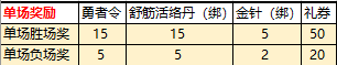 5.每场比赛均有胜利奖和失败奖,积分赛最后一场结束后同时发放排名奖。