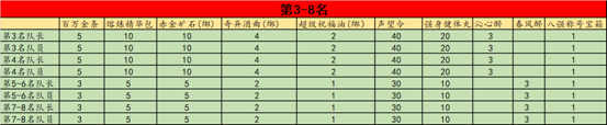 2、第二轮4进2战斗结束后,确定3~4名的战队,每个战队的排名根据战斗力排序,战斗力高的排名靠前,若战斗力相同,则随机排名。