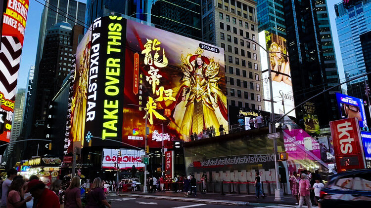 近日,盛趣游戏《热血传奇》新百区的宣传视频在美国时代广场大放异彩。