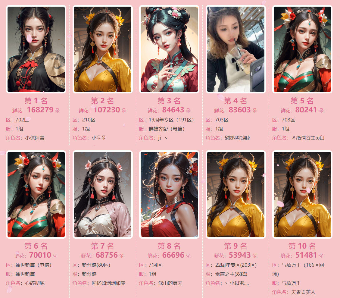 《热血传奇》七夕“女神降临”鲜花票选活动,经过激烈的投票,终于在8月10日(七夕)的24点圆满落下帷幕。感谢每一位参与鲜花投票的玩家,你们的热情让这个七夕变得更加浪漫和美好。