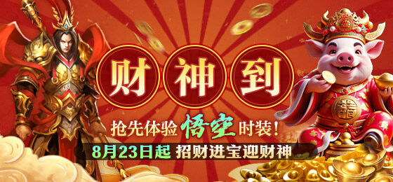 【财神大转盘】【活动区服】:1-175(167,168除外)【活动时间】:8月23日-8月26日【活动NPC】:节日大使【活动详情】:1、使用财神抽奖券即可参与(使用挑战点兑换)。2、转盘设有两圈奖励,外圈奖励由您自选设置(支持随时重置奖励)!3、抽中外圈“绿圈奖励”可获得一次进入内圈的免费抽奖机会!4、详情请以游戏内为准。【消费送悟空时装】【活动区服】:800-801区【活动时间】:8月25日-8月29日【活动NPC】:节日大使【活动详情】:1、活动期间,购买财神超值礼盒消费的传奇币,可额外获得“悟空积分”。2、消耗“悟空积分”可兑换悟空永久时装(绑定)。3、时装双击后进入锦绣阁界面进行穿戴;时装进入锦绣阁后属性生效。4、金箍棒属性(绑定):神圣主属性上限+600;悟空时装属性(绑定):魔血值+500、神圣防御+800;5、详情请以游戏内为准。