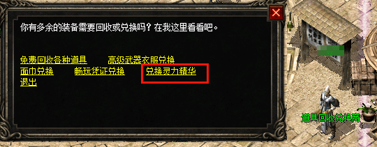 2、为了便利玩家,NPC道具回收兑换商处可以将10个灵力精华小兑换为1个灵力精华大。