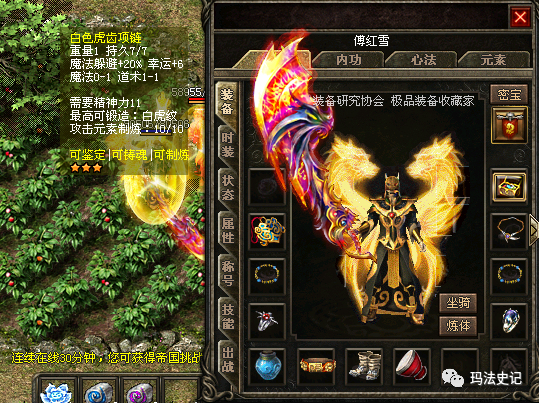 幸运加6,魔法0-1的虎齿项链总共加了7点属性,也达到了早年的附加属性点的上限。小编一直觉得这根虎齿项链是打怪掉落的,而且6点幸运真的太厉害了,相信老玩家们在网上也见过这根项链的身影,这么多年过去了它仍然存在,就在名字叫做“傅红雪”的玩家手里。