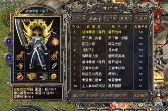 当然了,在传奇游戏中,白色虎齿项链最大的功效就是加了幸运之后可以搭配运九套,让玩家的每次输出都能发挥属性上限。而运九套基本上都是服务器顶级大佬才有实力搭配成功的,比如上图中落日战神英雄曾经拥有的这根白色虎齿项链属性非常逆天:60%魔法躲避属性外加3点幸运值,在搭配运九套的基础上还有超高躲避属性,真是单挑无敌神链啊。