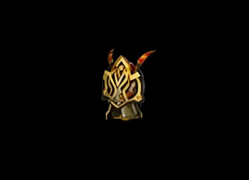 如上图所示,这就是天尊头盔的高清还原图,说实话,在游戏中佩戴的时候老道就觉得这头上顶一个大甲虫看起来十分瘆人。从高清图可以看出,这个头盔就下面那一段可以佩戴,上面那一大块都是装饰设计。一个镂空的金属空间里面伸出两根羽毛一样的东西,看起来真是奇怪得很。只能说如果天尊头盔是黄金打造,那么还有些价值,不然真是没啥亮眼的地方。