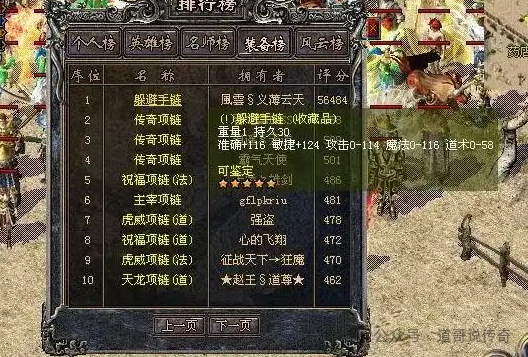 在老区早些年经常会出现服务器错误导致极少装备出现逆天的属性加持,比如上图中这个躲避手链就拥有全属性三位数的炸裂情况。战士佩戴准确刀刀精准且输出能秒,道士佩戴敏捷让战士绝望,法师佩戴不惧战士且魔法超强。总之,如果这根躲避手链能佩戴的话在当年真的可以挑战全服了。